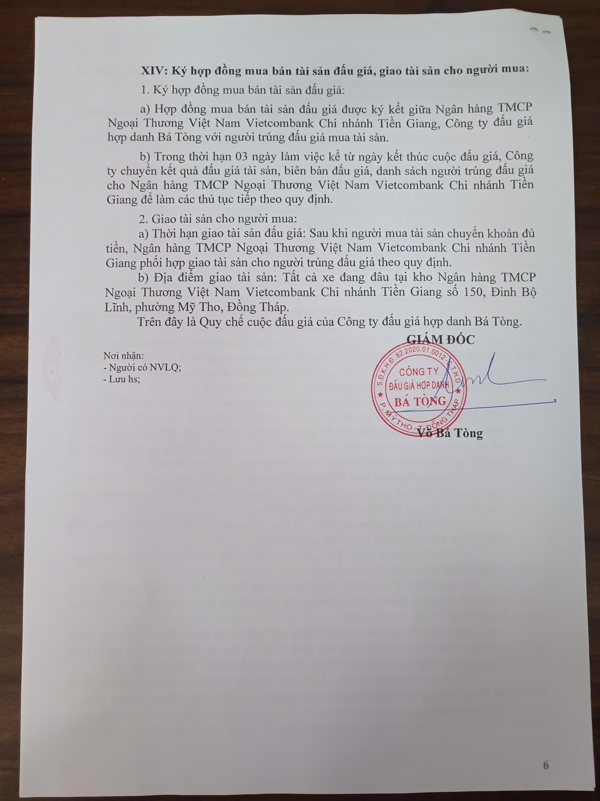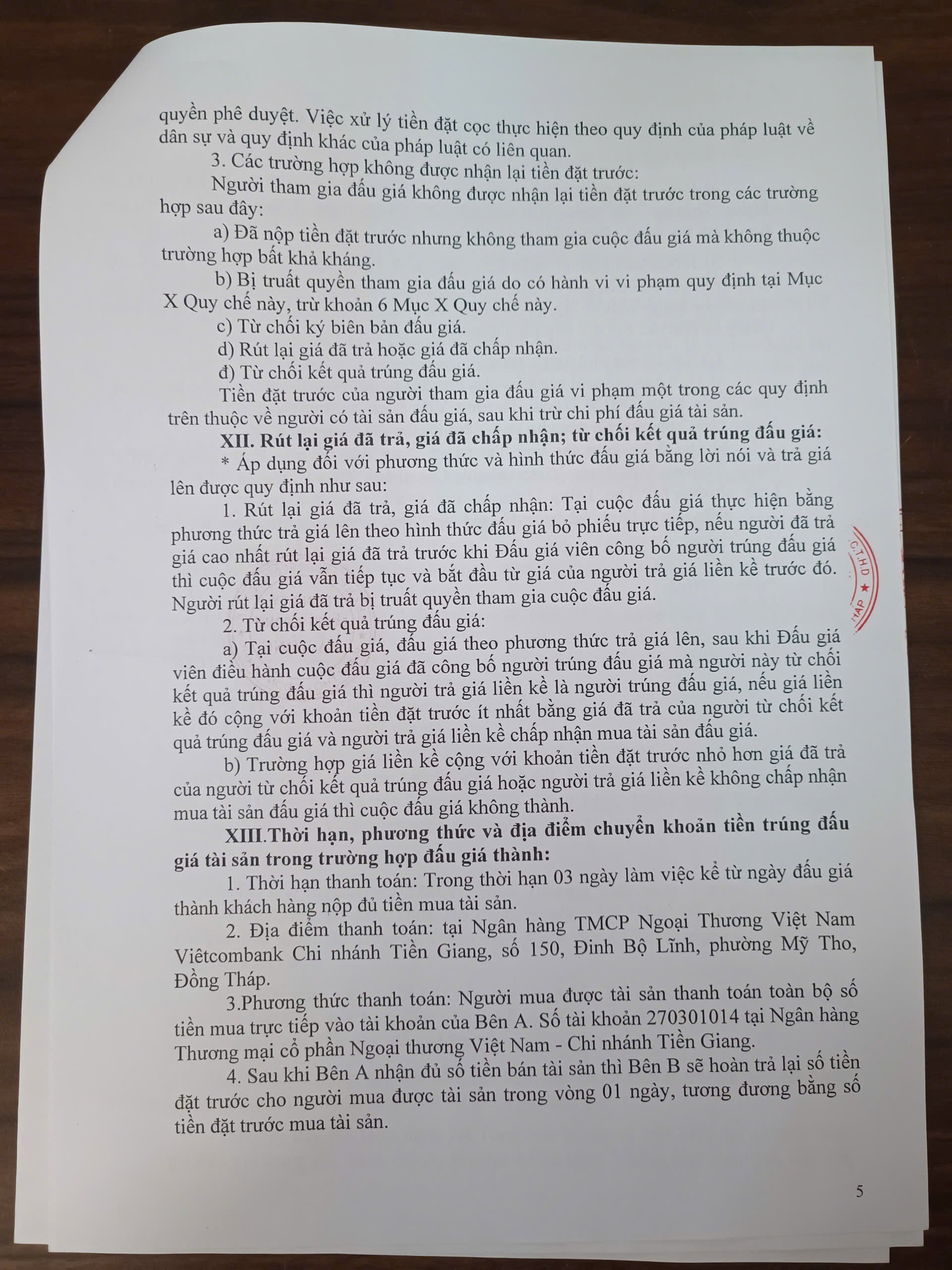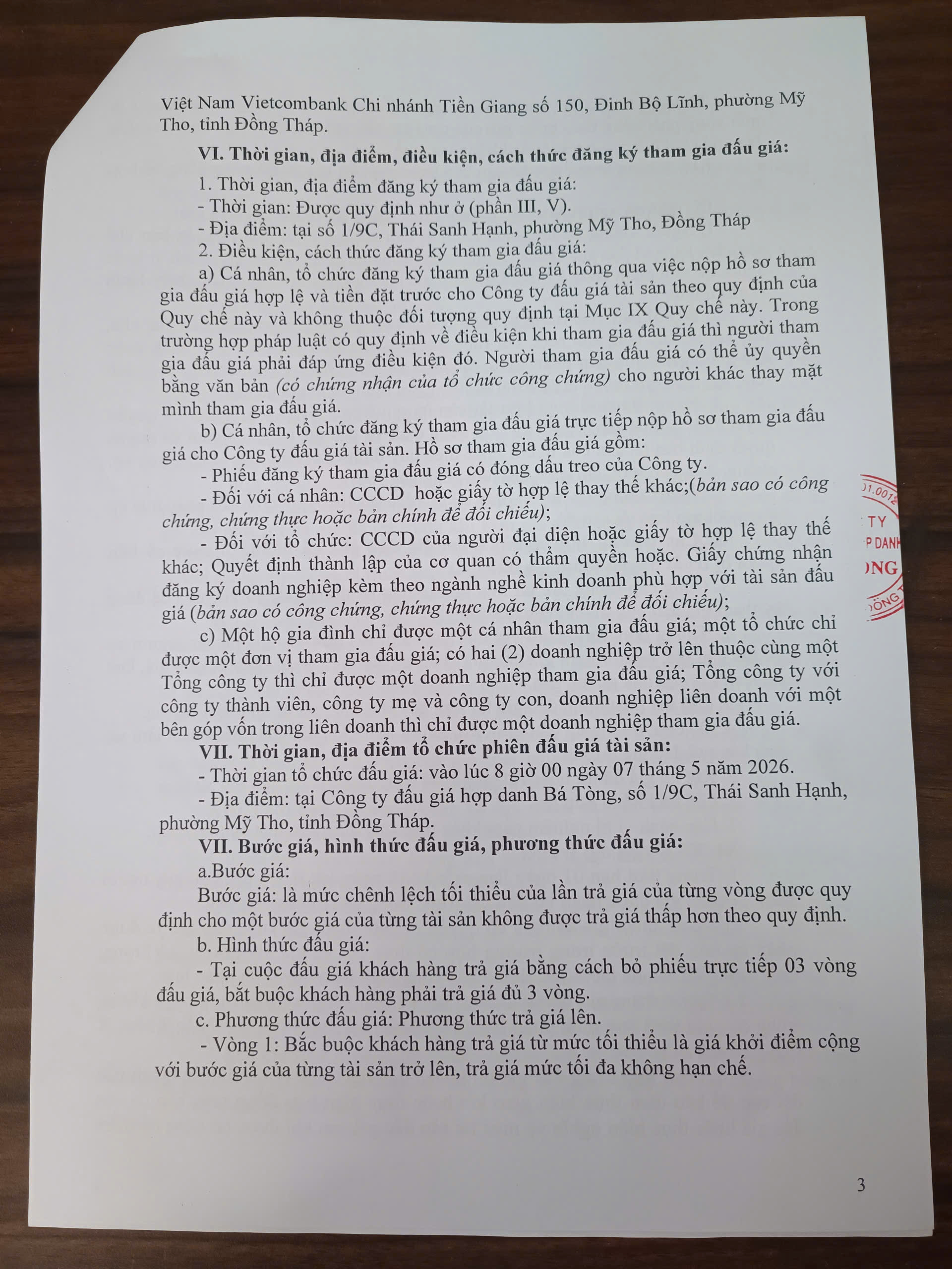 | 4. Địa điểm bán đấu giá: | Số 1/9C, Thái Sanh Hạnh, phường Mỹ Tho, Đồng Tháp |