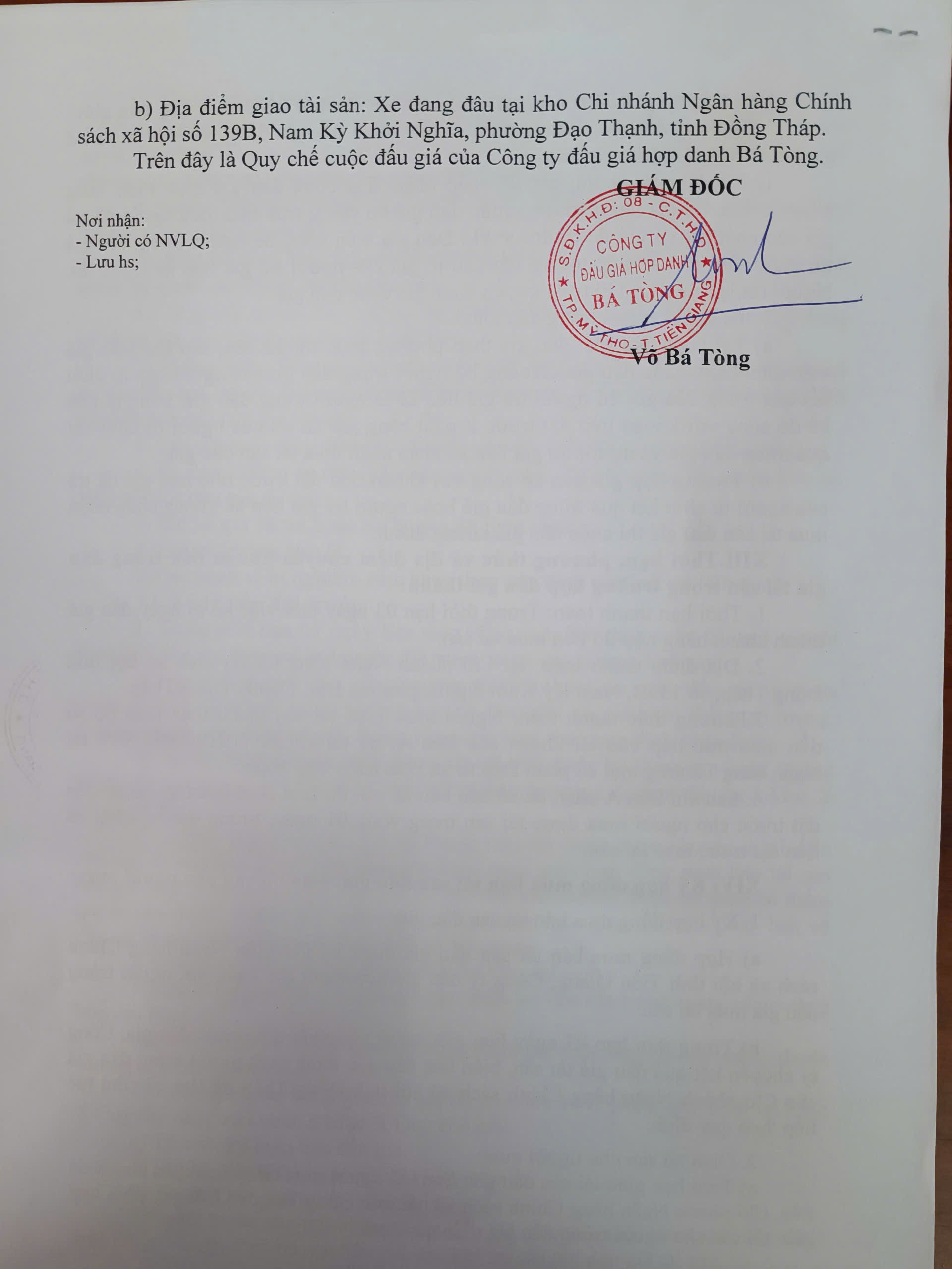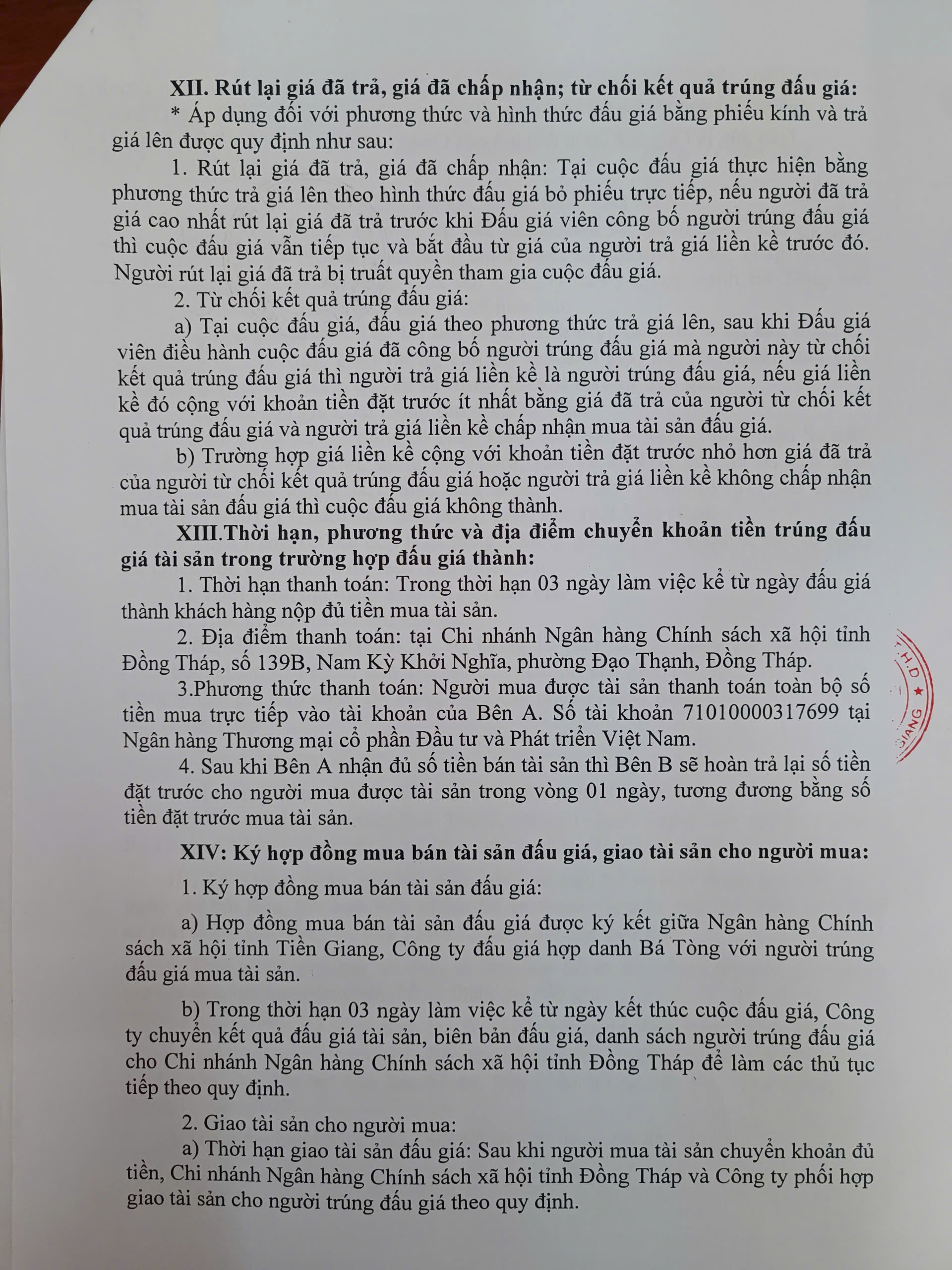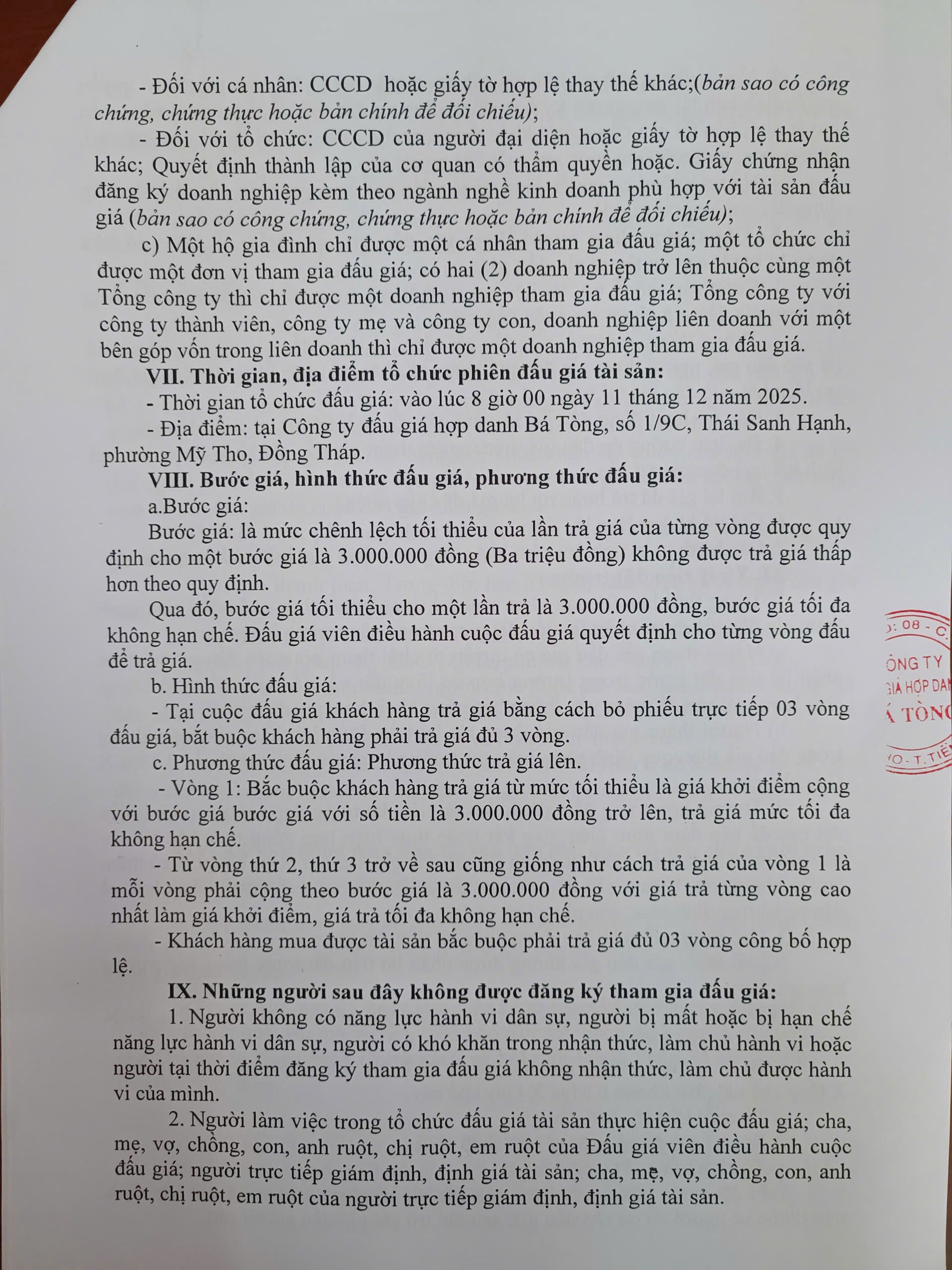 | 4. Địa điểm bán đấu giá: | Số 1/9C, Thái Sanh Hạnh, phường Mỹ Tho, Đồng Tháp |